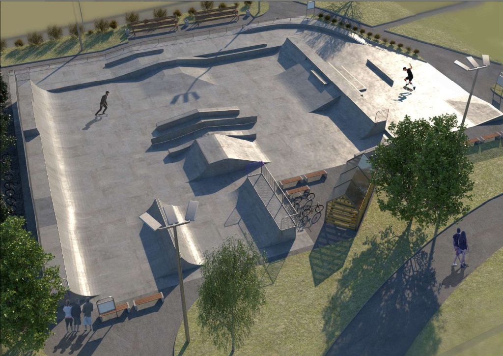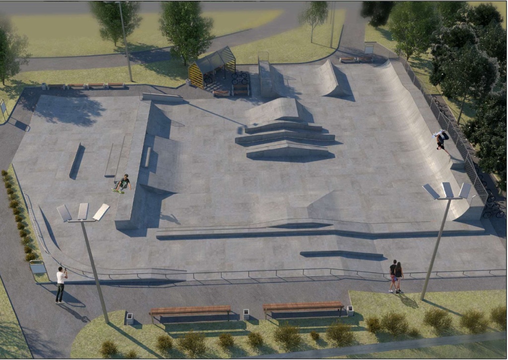 Po modernizacji Skatepark będzie ogrodzony. Kompleks składać się będzie z części dolnej wraz z zespołem urządzeń przeznaczonych dla osób zaawansowanych oraz części górnej dla szerszej grupy użytkowników.