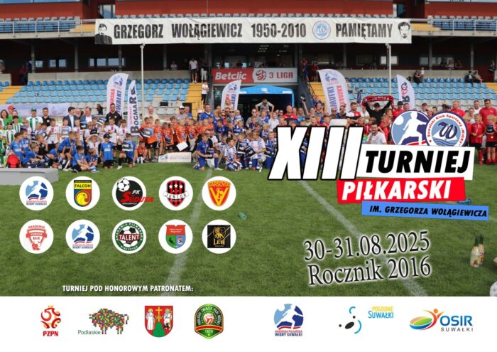 Już po raz trzynasty zapraszamy na wyjątkowe piłkarskie wydarzenie upamiętniające Grzegorza Wołągiewicza – byłego prezesa Wigier Suwałki, prezydenta Suwałk i prezesa Suwalskiej Specjalnej Strefy Ekonomicznej, a przede wszystkim pedagoga, wychowawcę i przyjaciela dzieci oraz młodzieży.