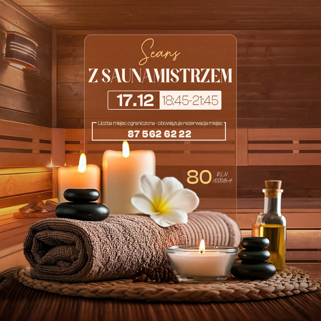 Seans poprowadzi certyfikowany Saunamistrz Polskiego Towarzystwa Saunowego z Katowic, który zadba o wyjątkową atmosferę oraz pełnię doznań podczas ceremonii saunowej.